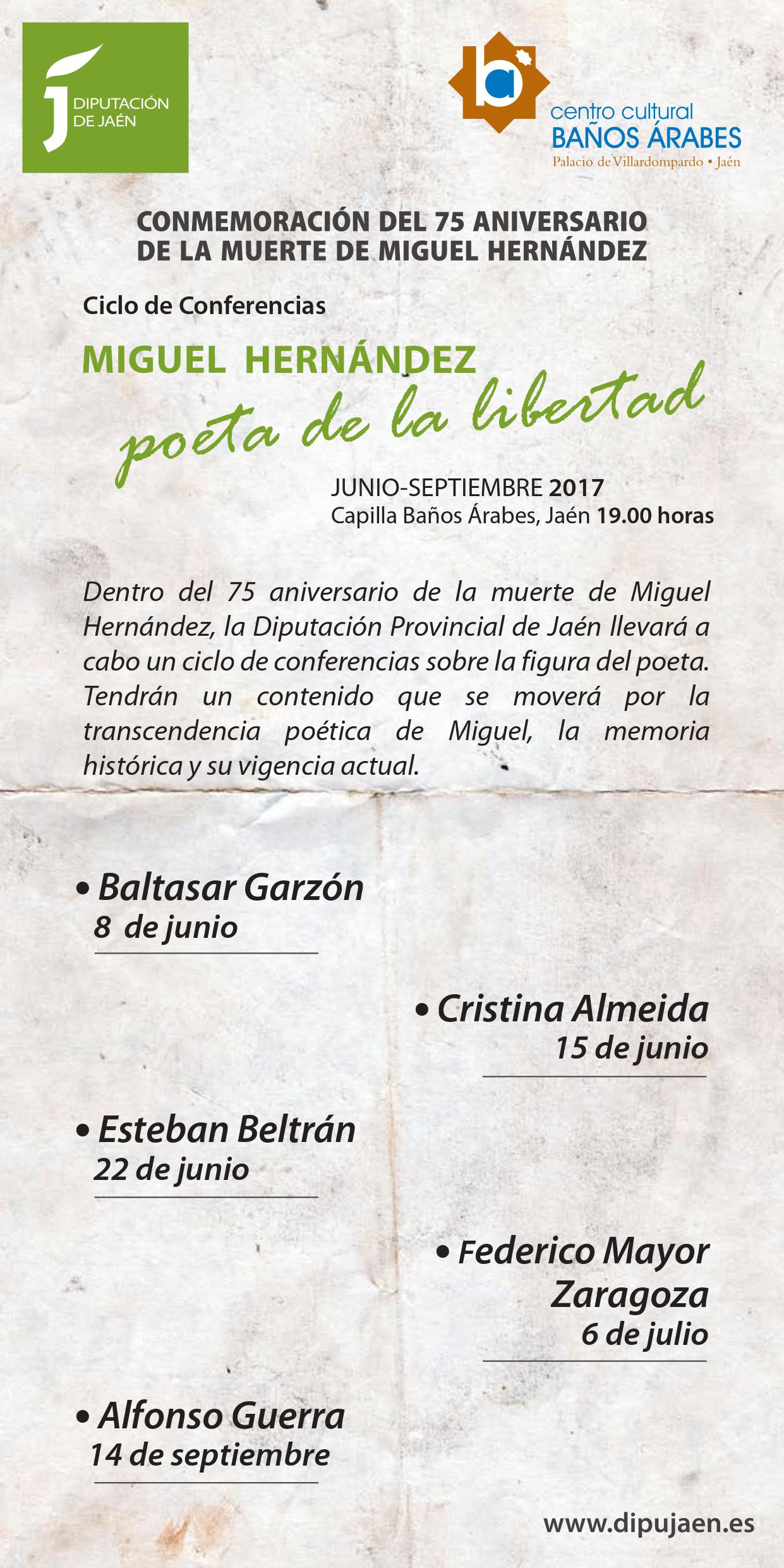 Ciclo de Conferencias “Miguel Hernández, poeta de la libertad”. El mismo se desarrolla entre los meses de junio y septiembre, incluyendo las ponencias de señaladas personalidades como: